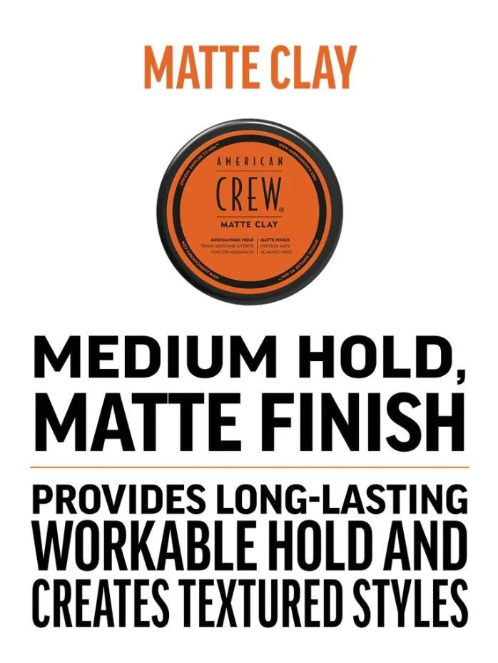 De American Crew Matte Clay 85gr heeft een medium hold. De Matte Clay bevat Kaolin Klei en Bijenwas. Deze ingrediënten zorgen ervoor dat het haar flexibel blijft na het stylen en er geen residu achter blijft. De Matte Clay heeft een matte afwerking.