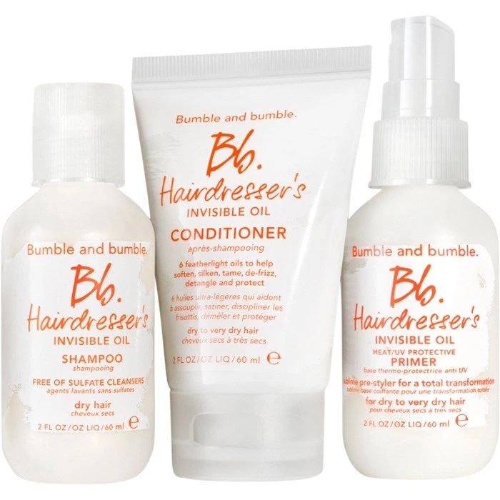 Bumble & Bumble Hairdresser’s Invisible Oil Trial Set is de ideale manier om kennis te maken met de Hairdresser’s Invisible Oil producten. Deze set bevat travel sizes van de HIO Shampoo, HIO Conditioner en HIO Primer. Geschikt voor alle haartypes.