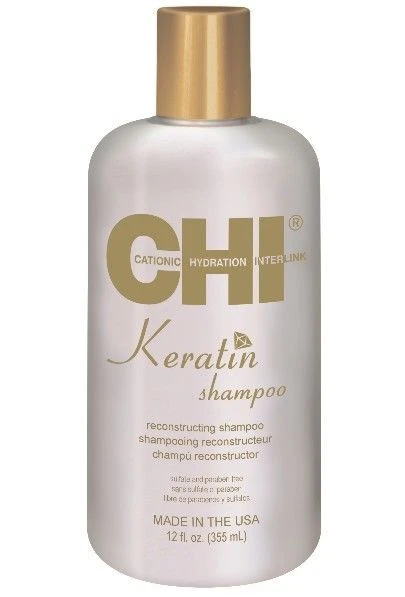 De CHI Keratin Shampoo 946ml is een shampoo die het haar een milde en intensieve verzorging geeft. Het haar wordt versterkt door de keratine, de keratine vult de beschermlaag van het haar aan en daardoor is het haar beschermt tegen schade van buitenaf.Daarnaast is de shampooo verrijkt met jojoba en arganolie. Al deze ingrediënten verzorgen het haar en gaat pluis tegen. Deze shampoo is vrij van parabenen en SLS.