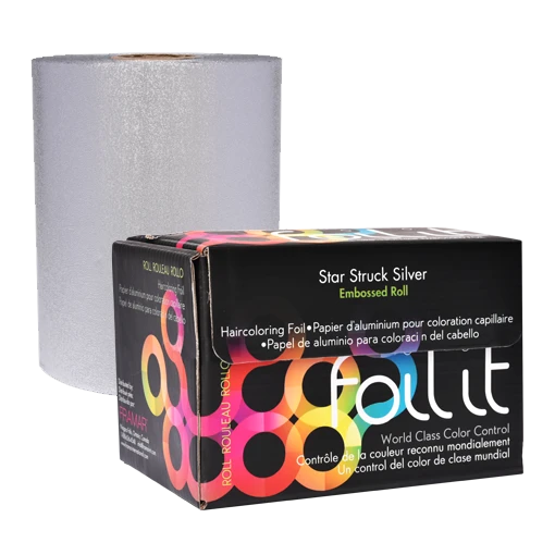 Framar Star Struck Embossed Medium Aluminiumfolie Silver is onmisbaar in iedere salon. Deze zilverfolie zit op een rol van 97.5 meter en de folie is op iedere gewenste lengte af te snijden.