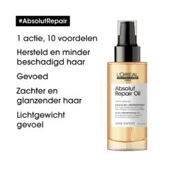 L’Oréal Serie Expert Absolut Repair Gold Oil is een 10-in1 olie speciaal geschikt voor normaal tot beschadigd haar. Deze haarolie biedt maar liefst 10 verschillende voordelen in de verzorging en bescherming van de haarvezel.
