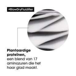 De Blowdry Fludifier Blow Dry Cream bevat plantaardige proteïnen die de haarvezel niet alleen beschermen, maar ook sterker maken.