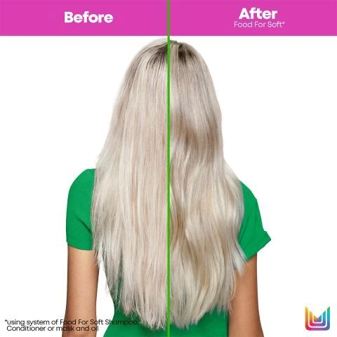 Het masker biedt tot 7x meer vocht gedurende maximaal 72 uur wanneer je het masker gebruikt in combinatie met de Food For Soft Shampoo in vergelijking met een niet-conditionerende shampoo.
