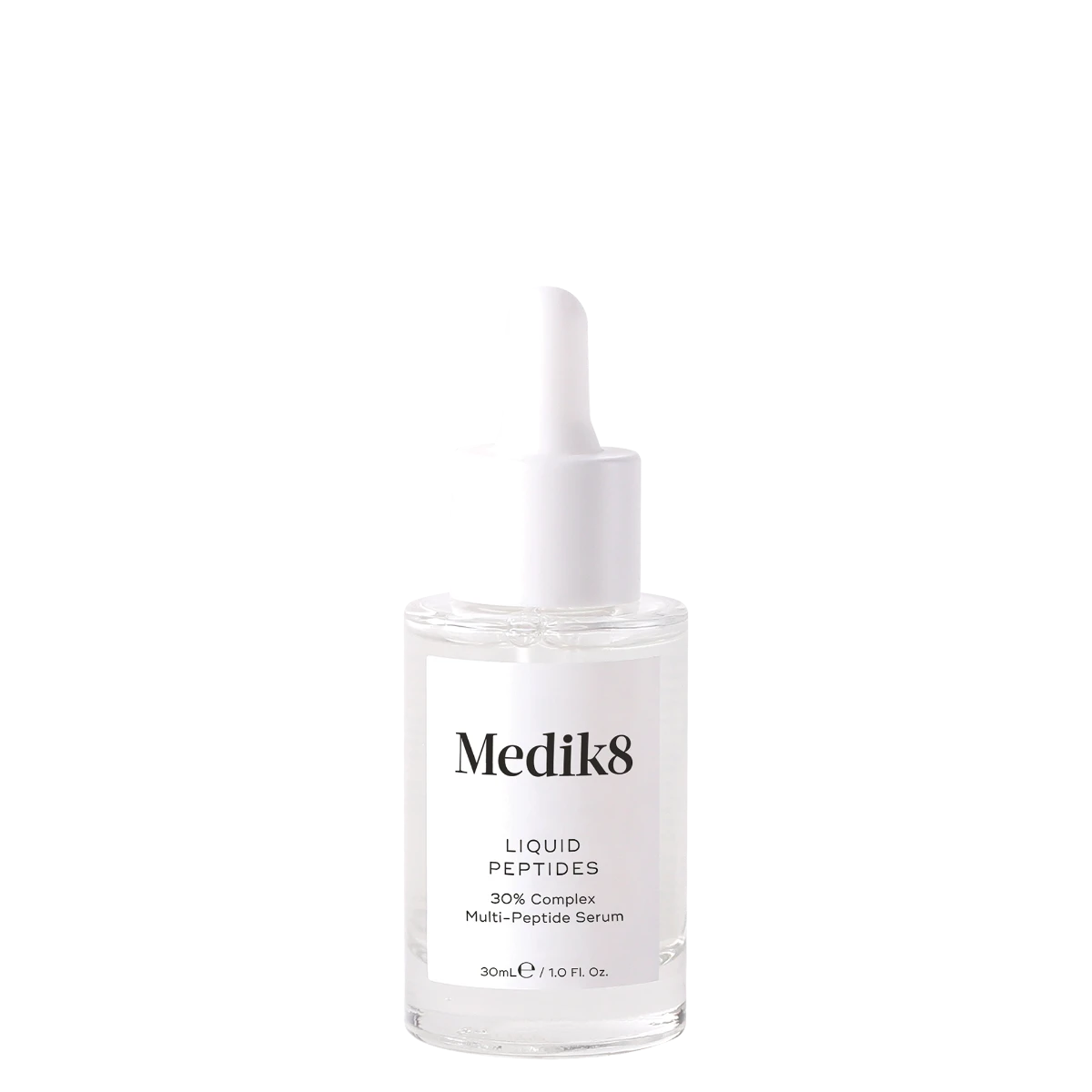 Medik8 Liquid Peptides brengt de huid weer tot leven! Dit ultra-hydraterende serum versterkt de productie van collageen en elastine, verfijnt fijne lijntjes en rimpels en verhoogd de natuurlijke opslag van hyaluronzuur in de huid.