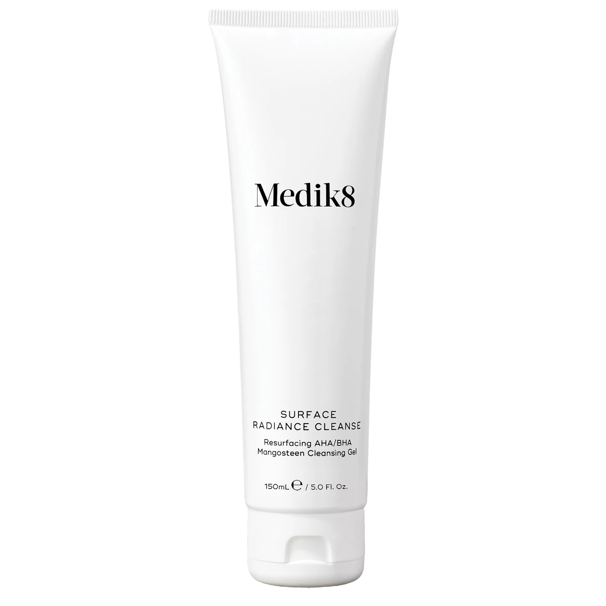 Medik8 Surface Radiance Cleanse exfolieert de bovenste lagen van de huid. Hierdoor wordt de cyclus van de huidcelvernieuwing vernieuwd en ontstaat er een frissere, heldere teint. Ook worden rimpels en fijne lijntjes verzacht en geminimaliseerd.