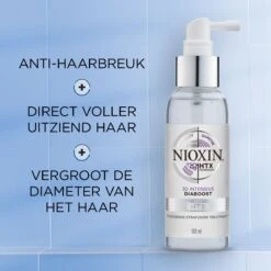 De Nioxin Diaboost met HTX technologie is een samenstelling van niacinamide, panthenol en cafeïne. Deze formule maakt het mogelijk het haar direct te verzorgen. Het geeft de diameter van het haar direct een boost, dringt diep door in het haar en maakt het voller. Het verzorgingsproduct verdikt het haar vanaf de haarwortel tot aan de puntjes. Na gebruik is het net alsof je veel meer haar hebt.