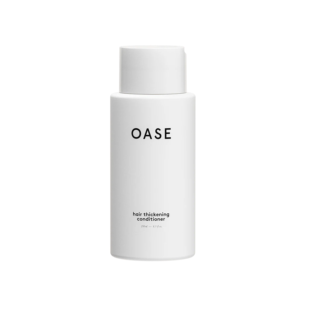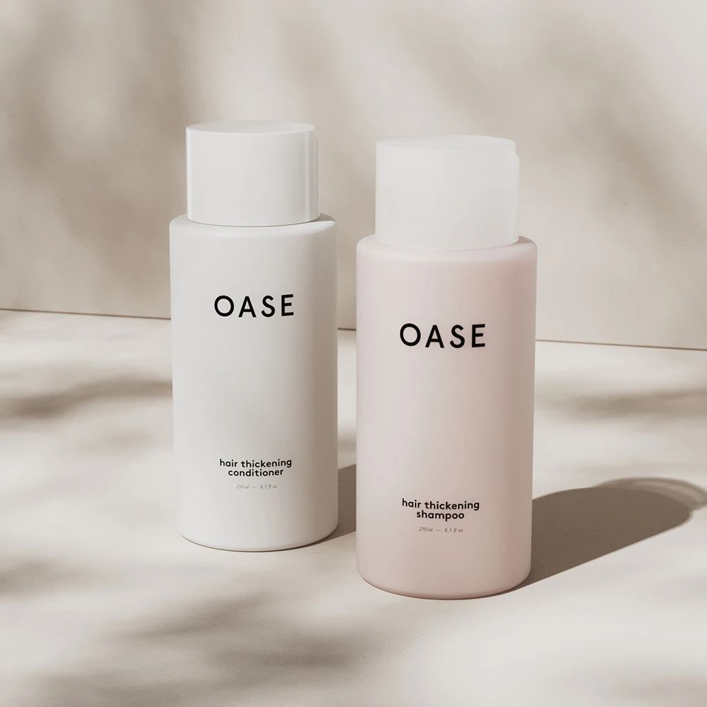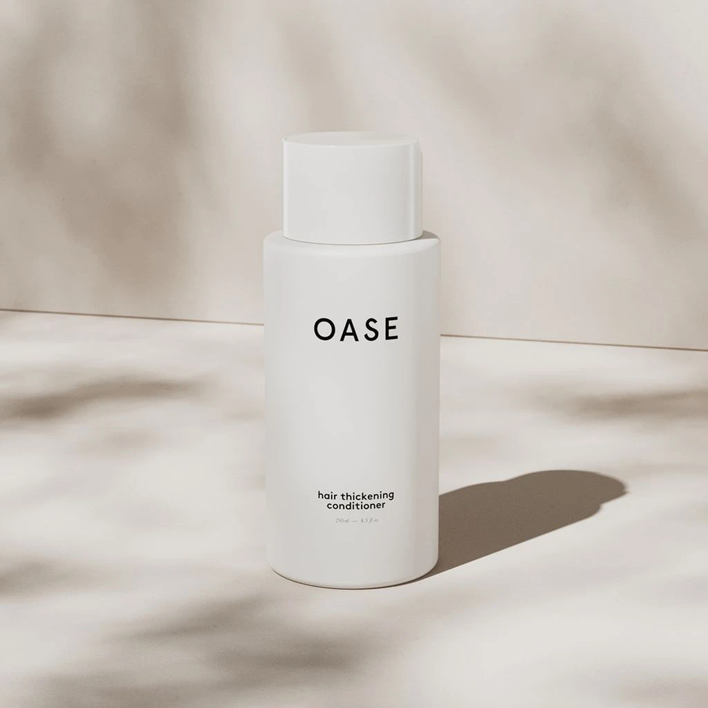 Oase Hair Thickening Conditioner is voor iedereen die droomt van een volle en glanzende haardos! Deze Conditioner legt de basis voor een gezonde haargroei. De Hair Thickening Conditioner bevat 13 actieve, op wetenschap gebaseerde, ingrediënten die hoofdhuid voeden en kalmeren en het haar dikker en gezonder maakt.