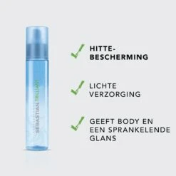 De Trilliant haarspray van Sebastian verzorgt en beschermt het haar tegen hitte apparaten. Ideaal als je je haar bijvoorbeeld wil krullen of stijlen. Naast deze bescherming geeft de spray het haar een prachtige glans zonder het haar te verzwaren.
