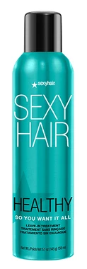 De Healthy So You Want It All van Sexyhair is een lichtgewicht leave-in treatment die helpt op de schubbenlaag van het haar te verzegelen en zo breuk vermindert en gespleten haarpunten voorkomt.