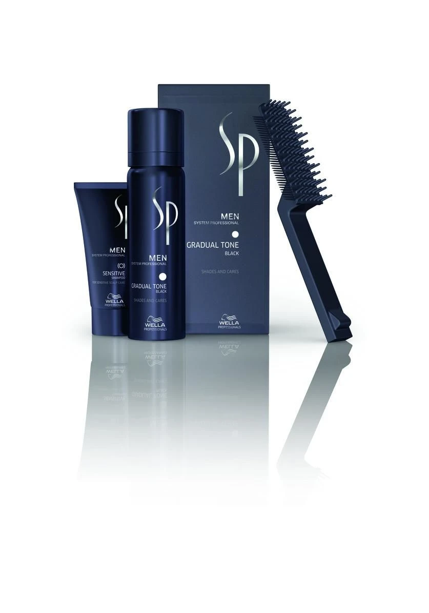 Als onderdeel van Wella heeft SP een product ontwikkeld speciaal voor mannen met natuurlijk zwart haar waar grijze haren in komen. Een absolute aanrader voor mannen die hun natuurlijke haarkleur terug willen. De verzorging is rijk aan een speciaal ontwikkelde anti-aging technologie met vitamine C en aerobe pigmenten. Deze zorgen voor een optimale verzorging van het haar tijdens de behandeling.