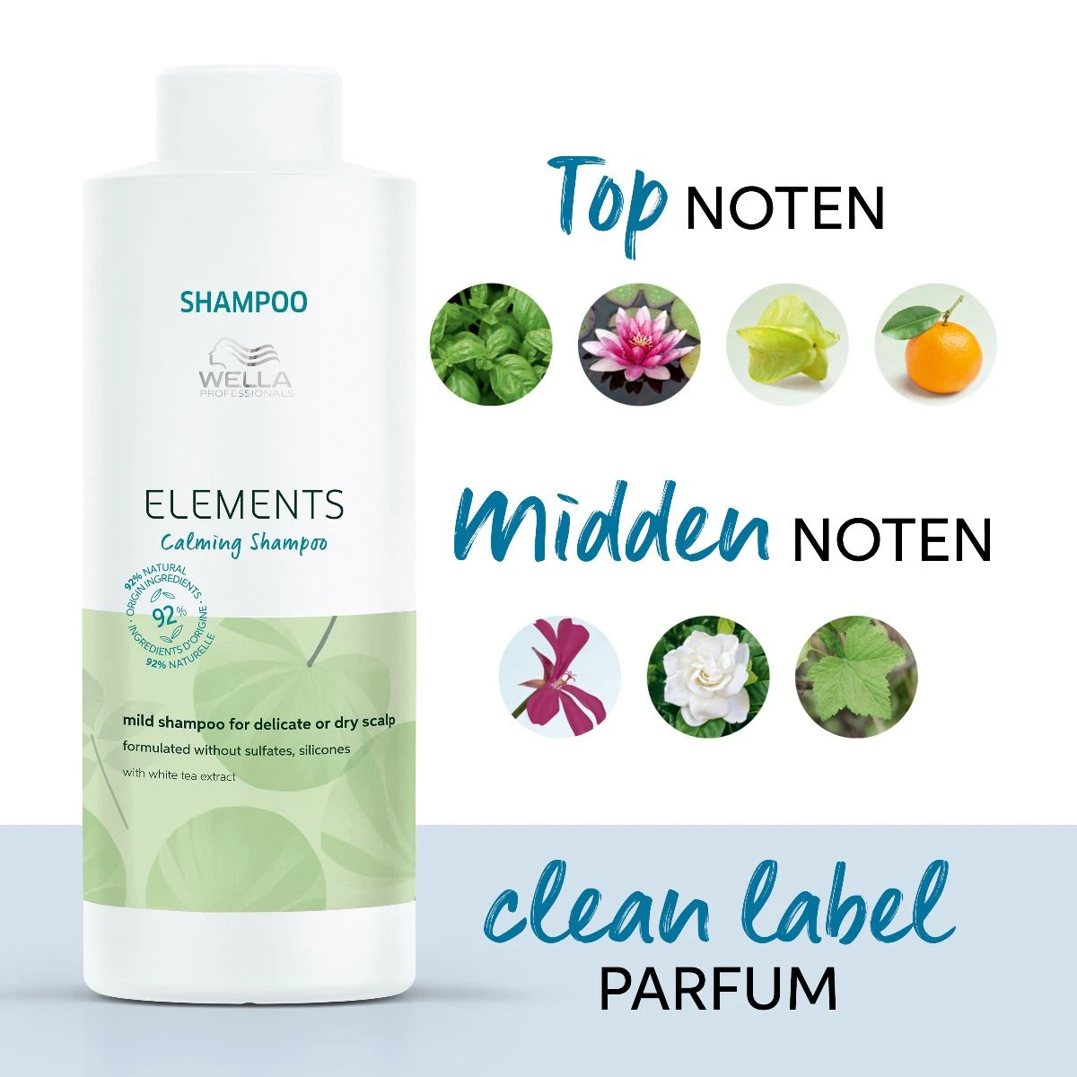 Maak kennis met de groene producten van Wella Elements. De Wella Calming Shampoo is 100% vegan en vrij van sulfaten en siliconen. De shampoo bevat voor 92% ingrediënten van natuurlijke oorsprong, waaronder plantaardige glycerine, witte thee-extract en provitamine B5. Daarnaast zit de shampoo in een verantwoorde verpakking die is gemaakt van 50% gerecycled plastic.
